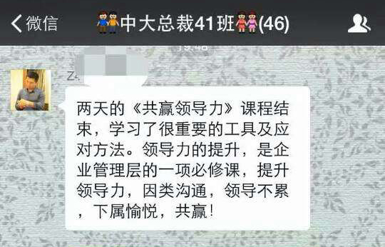 上周末,中山大学时代华商总裁41班的同学迎来了班级的首次课程,由著名管理培训专家章义伍老师主讲《共赢领导力》。两天的课程让同学们收获满满,课后同学们都忍不住在微信群里分享学习收获,现在让我们一起看看大家都学到了什么吧。