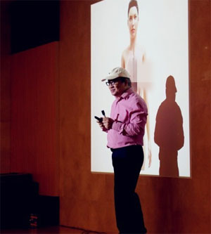 瑞博士现场播放了很多医学镜像设备拍摄或电脑模拟的生产过程的视频。让现在的父母和孩子有更直观的感受。